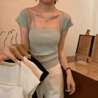 봄여름 슬림핏 스퀘어넥 셔링 니트 탑