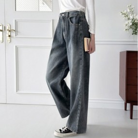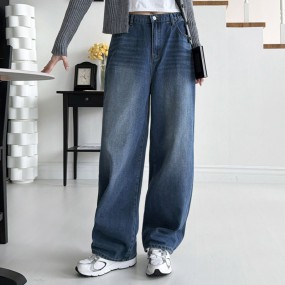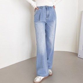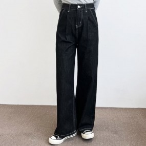 여성 핀턱 넌페이드 핏 와이드 데님 팬츠