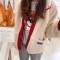 - 한국 스타일 겨울 과립 플러시 양면 착용 재킷 chic 디자인 센스 루즈핏 양털 레트로 빅 사이즈 배색 여성 코트