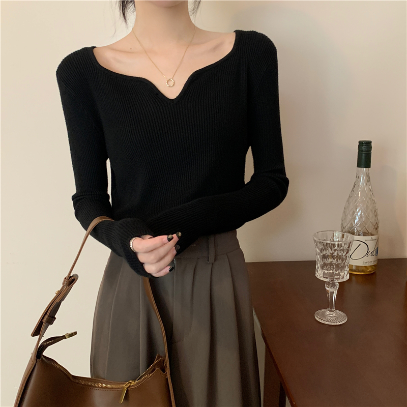 새로운 가을 겨울 스타일 반 터틀넥베이스 셔츠 다목적 단색 니트 스웨터